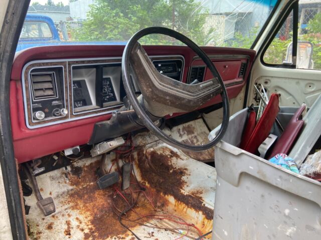 1978 F350 Super Camper SpecialHigh Line Lariat Trim PackageNon-Op Project Truck460 4v AT PS PB ACClear Title in HandNew Interior! I bought this project truck a few years back to restore, Iâm probably still a few years away; it only makes sense to give someone else a chance here... classic trucks have become increasingly harder to find, and more expensive. I've held on to a few of the rare, high-line trim, well-optioned examples. This is one of them.A very rare truck, the F350 Super Camper Special is a heavy 1-ton extended-wheelbase hauler. This was the Cadillac of trucks when new in 1978. Featuring the rare Lariat trim package, the interior features additional sound deadening, very fancy Lariat-specific seat upholstery, headliner, and door panels. I have never seen a Super Camper Special with the Lariat package.Truck is extremely straight, and still wears itsâ original Wimbledon White factory paint. It will polish up nicely. Factory red interior is a gorgeous compliment when completed. Expensive Alcoa aluminum wheels all around. No rust-through presenting, floors and bed are solid. Most, if not all trim that seems to be missing in pictures is included with the truck. I've included pictures of the truck as-found, when I purchased it years ago, before she had a good bath. Trim showing on the truck in these early pictures is still present, and included with the truck. Original 460 4v engine is seized; I have had good luck in the past getting these to run again, but assume the engine will require an overhaul or rebuild. Loaded truck equipped with automatic transmission, AC, tilt wheel, cruise control, power steering, power brakes, and more.Sale includes a freshly-upholstered red Lariat seat (cost almost $2,000.00!), new red door panels, and a new red carpet kit. The original red Lariat headliner is also included in great condition, as is the red dash pad, visors, and more.Clear title in hand. Call Tim at 360-936-9257 with any questions. While every effort has been made to describe the vehicle as accurately as possible, it is in fact a 44-year-old classic truck, and therefore being sold exactly as-is, without warranty or guarantee expressed, written, or implied. Expect issues associated with a used classic of this era.Please be ready to make payment in full within 3 days of auctionâs end via deposit into my Bank of America account, or bank wire transfer. Shipping is the full responsibility of the buyer; I own a classic car restoration shop and can recommend a reliable and affordable broker who I have used many times... ultimately the choice must be yours alone.