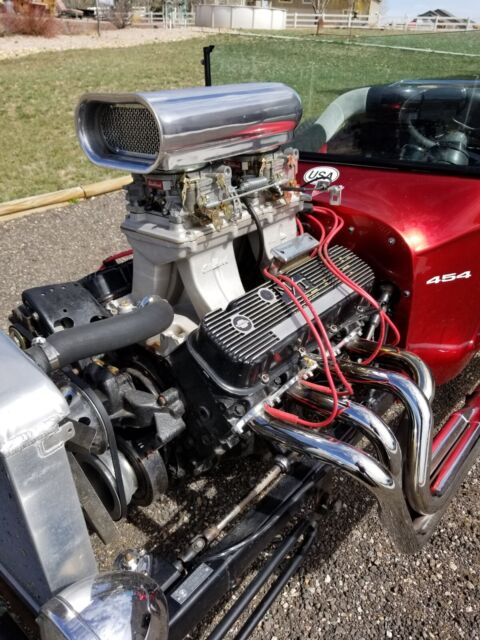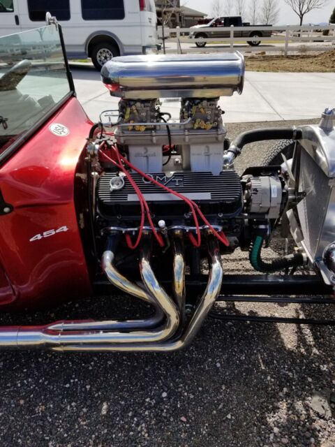 1923 Ford T-Bucket Roadster- Rat Rod, Big BlockFiberglass body, Colorado clean title 2017454 Chevy, 350 Turbo transmission, Dodge 8 ¾ rear end, VW bus torsion bar rear suspension, Ford locking tilt steering column, disc brakes.Edelbrock tunnel ram manifold, two Edelbrock 600 carbs, custom chrome headers and side pipes (mufflers). Mickey Thompson tires (good tread), Holley electric fuel pump, Enos âBlack Boxâ electric wiring board,inline fuel flow limiter, front Suzuki steering stabilizer, working gauges (except speedometer). Speedo needs cable and gear from trans or electronic sender. Additional parts: braided fuel line designed for dual 4 bbl carbs, front shock mounting brackets from Speedway with headlight mount holes, Edelbrock jet kit for the carbs (multiple jets and meters)This is basically stock 454 with a serial number landing between 1973 and 1982. The tunnel ram is a challenge to tune where I live near Denver but runs great at sea level. Reasonable low miles simply because I donât drive this car often but there is no odometer. Nice and loud, quick, but still needs specific tuning for your area. New battery, new oil, new trans fluid. This is not a show car but it is a head turner anywhere you go. I have documentation on the engine, trans, rear end, and tuning curves. The rear end gear seems to be a 353 but the Dodge front-load differential is extremely easy to swap to a lower gear. Title is a Clean ASVE (Assembled Vehicle Title) in Colorado. E-Bay made me list it as reconstructedBuyer responsible for shipping. I will help where I can. Call with any questionsThis T Bucket will be released to the new owner when US FUNDS FULLY CLEAR THE BANK!!