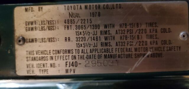| VIN (Vehicle Identification Number): | FJ40-295031 | Mileage: | 95000 |