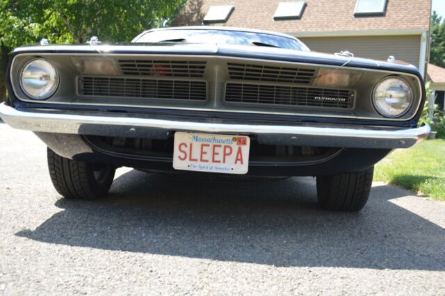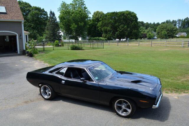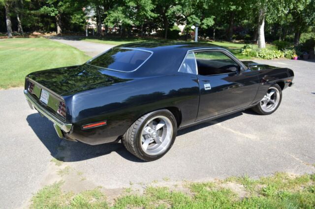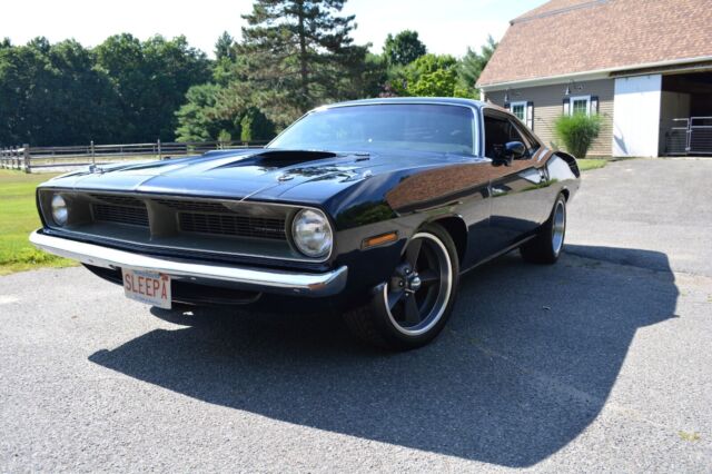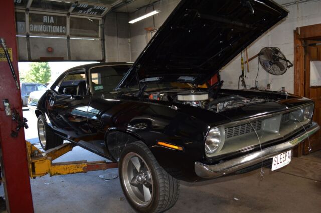 1970 Plymouth Barracuda began its life as a Slant-6 commuter car in Lemon Twist Yellow,Very little information about the car's history exists prior to 1999, parts receipts indicate the motor swap and 'Cuda homage conversion took place 1999 - 2001. Car was resold twice and arrived into current ownership in 2014, at which time it received extensive bodywork and was repainted Black (from black w/maroon accents) and tuned by SV Engineering in Peabody MA where it was dyno'd to 245hp / 288tq.The current owner passed in 2016 and vehicle ownership transferred to his wife. The car has been driven less than (500) miles since that time. In maintaining the car, headers, carburetor, brake booster, and fluids have all been replaced 2019 - present.Youtube links below. Car has some rough cold starts, but runs great and turns heads everywhere, and has all the power anyone needs. Well, most people.Author's note: the (2) walk around videos were taken immediately after the cold start videohttps://www.youtube.com/watch?v=ZxVIfmUHJ7shttps://www.youtube.com/watch?v=uO5cy2uMuc0https://www.youtube.com/watch?v=Qvxk6wUD6oMhttps://www.youtube.com/watch?v=sXkj8hP0M9ghttps://www.youtube.com/watch?v=TbJvQH_xQBghttps://www.youtube.com/watch?v=KDhM9GtZy4shttps://www.youtube.com/watch?v=7pXPgUbyFFIKnown issues:- Rough idle at cold start. Best to keep a foot on the gas pedal for the 1st minute or two. - Clunky shift to Reverse, mechanic advised me that U-joints are solid but could be replaced.- Shifter T-handle threading is stripped, mechanic recommended drilling & installing a worm screw- Trunk is unlined- Driver's seat does not fold forwardClean Massachusetts title says 32,455 miles, I have nothing to the contrary.