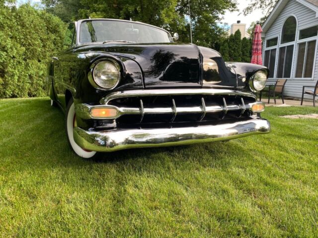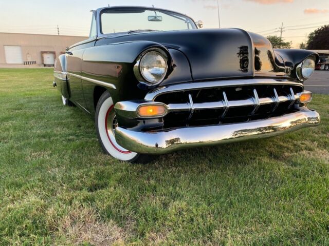 1954Chevrolet Belair ConvertibleSame owner last 28 yearsBody· Original black and white convertible · Two stage basecoat/clear coat· â55 eyebrows· Hood nosed, shaved and peaked· One-piece front bumper· Diamond taillight lens· All chrome and stainless in excellent condition· Newer convertible power top in very good condition· Excellent plastic rear window· Top boot Engine· 350 CI GM crate motor â 290 HP· Edelbrock 650 cfm carburetor· Edelbrock performer dura-shine manifold· Edelbrock finned aluminum valve covers· Summit multispark · Headers · 350 turbomatic with 2500 stall kit· New gas tank Suspension· Fat Man Fabrication rack and pinion steering â power· Wilwood four-wheel power disc brakes â stops excellent · GM rear end 3:25gears· New shocks · Original rims(painted red)· Coker Classic White Walls 215/75R 15 (new in 2006)· Original rear springs Interior· Exact replica black and white vinyl seat covers · Exact replica black and white vinyl door pads· Daytona carpetingâ tight loop· Black paint and chrome on dash are original and in very good condition· Custom Auto Sound radio and four very well concealed speakers· Heater and all gauges work. Original wind-up clock works when itâs in the mood· Speedometer works but odometer is stuck turning to 90K miles which is most likely close to original miles. I bought in 1993 with 70,500. I have owned this car for over 28 years. It has been rebuilt twice. The last time was in 2005-2007. The goal was to make it feel like a tri-five Chevy with â55 eyebrows and a strong V-8 engine. All work professionally done by a few excellent craftsman in the Cleveland area. In 2009 the car was placed in storage for 10 years while I took a job out of town. The car has probably been driven less than 3000 miles since the second rebuild. Much work has gone into to this build to make it a great driver quality ride. Dependable, excellent road handler, brakes like a Lexus and gets thumbs up at every light. Black and white original colors are very rare for a 1954 Chevrolet convertible. The paint lays flat and has a mirror finish. This is a driver so it will have a few nicks and bruises. Clean Ohio title. Price:$54,900