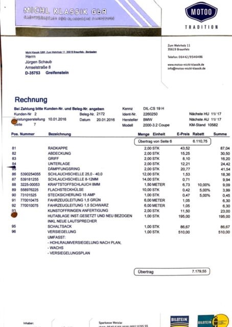 Bought This a true 1972 BMW 3.0CSi at the time i was in Sweden and Germany about 2 years ago and subsequently imported to the US. A refurbishment carried out over the last five years reportedly included a repaint and a refresh of the braking system, as well as installation of a Getrag five-speed manual transmission. Power is supplied by a replacement fuel-injected 3.0-liter inline-six, and additional features include a stainless steel exhaust system, a sunroof, a wood shift knob, a Blaupunkt cassette radio power antenna , Bilstein shocks, and 14â³ turbine-style wheels. This E9 is now offered with purchase documents, ownerâs manuals, service records, a tool kit, a fold-out warning triangle, and a clean Georgia title in the sellerâs name.Finished from the factory in Malaga Red , the Karmann-built body was reportedly repainted in 2016, and the seller notes additional work performed at that time included re-chromed brightwork along with a replacement windshield, weather-stripping, and badges. Exterior features include a power antenna, quad headlamps, fender vents, and dual side mirrors.ATS 14â³ Alpina-style wheels were fitted during previous ownership and are mounted with 205/70 Vredestein Sprint Classic tires that show 2017 date codes. The brake system was overhauled in 2016, and the suspension has been fitted with Bilstein shocks.The seats were recovered in black leather during current ownership, and the cabin features a restored wood trim on the dash, console, and door panels. Amenities include a crank-operated sunroof, a wood shift knob, an analog clock, and a push-button Blaupunkt cassette radio .New battery in 2020A three-spoke Petri steering wheel sits ahead of a 240-km/h speedometer and an 8k-rpm tachometer. The five-digit odometer shows 33k kilometers (~21k miles), a handful of which have been added by the seller. Total mileage is unknown.Power from a rear wheel drive is shifted through a Getrag five-speed manual transmission that was installed in 2019. Additional photos of the underbody are included .Original bill of sale, import documentation as well as customs and books and owners manual Restoration with documents available in 4 inch binder exceeded $30000, A full stainless steel exhaust system including headers that sound awesome $7000