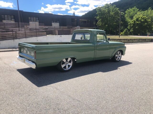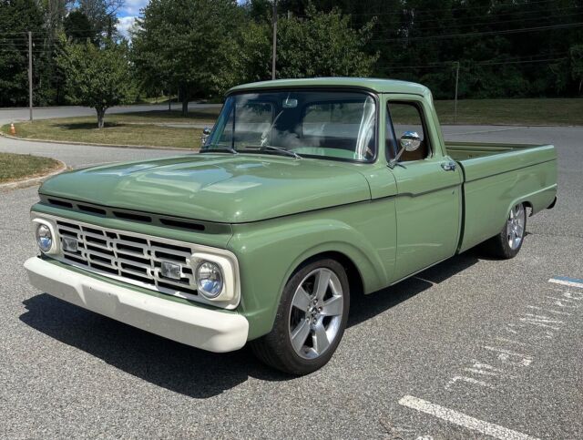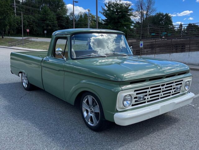 @import url(https://fonts.googleapis.com/css?family=Roboto); About this vehicle This 1964 Ford F100 is a restomod with updates to the exterior, interior and drivetrain. The owner has had it for 1 year. The vehicle runs great and is mainly used for weekend drives. Vehicle Details This truck is a great investment! Old school look with new school performance and handling! Exterior This 1964 Ford F-100 has just been finished being restored. It has been fitted with a 4.6-liter Ford V8 and automatic transmission from a late-model Mustang. The truck has been repainted in boxwood green and also features a refinished frame with boxed reinforcements as well as a Crown Victoria front end and a three-link rear end. Additional modifications include four-wheel disc brakes, power rack and pinion steering, rear coilovers, 18â³ aluminum wheels, a relocated fuel tank, nice tan upholstered interior Mustang instrument cluster gauges , and oak hardwood bed slats. This modified F-100 is offered with build photos and a clean New Jersey title in the sellerâs name. The cab and bed were removed from the frame for rust repairs as pictured in the gallery below, and were coated with epoxy primer before color and clear. The cab houses the original bench seat that has been retrimmed in tan upholstery. Tan carpet cover the floor. All new chrome and new weatherstripping gaskets and seals Features include a Lokar shifter with a matching tan shifter boot, and a wood-rimmed steering wheel. And modern gauges The fuel-injected 4.6-liter SOHC V8 features three valves per cylinder. Power is routed to the rear wheels with an automatic transmission. And aluminum custom fitted driveshaft. This f-100 drives steers and stops like a new truck! so far it has been driven roughly 500 miles since restored. Itâs been being a lot of attention. A real blast to drive! This is my 3rd f100 build, there will be many more so please reach out if you not quite ready yet but would like one in the near future! Interior Please donât hesitate to message me about any questions you might have, Iâll be glad to give you a ring and set a date for you to come inspect the truck and go for a test drive! Please check out my instagram page and YouTube page for pictures and videos of this build along with my other f100s I have built and sold @travisnichol496 on instagram https://youtu.be/-rXC5uTCmYM Engine Download the eBay Motors app