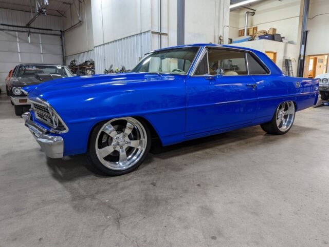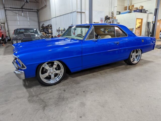 1967 Nova Restomod-Absolutely stunning custom frame off rotisserie restoration-House of colors Oriental Blue that is SHOW QUALITY!! The shine and depth of this paint is unbelievable!!!-LS2 All aluminum 500HP engine by Turn Key Engine Supply in California-700R4 Overdrive 4 Speed automatic transmission-FAB 9 Rear differential with 3.73 gears and positraction-Mini-tubbed with 4-Link Kit-Heidtâs Custom front subframe-Chris Alston Rack and pinion steering-Willwood 4 wheel big brake disc kit with drilled and slotted rotors-Dakota Digital Gauges-Air Conditioning and Heat by Classic Auto Air-Varishock Front and Rear Coil over kit fully adjustable compression and rebound. Nice and smooth ride!!!-Tinted glass-Custom high dollar real leather Beige interior-Aluminum Driveshaft-High dollar stereo system with Pioneer in-dash touchscreen-Arcaudio amp and subwoofer hidden behind custom trunk enclosers-GPS and Bluetooth-Full Stainless Steel 2 1/2â mandrel bent H-piped custom exhaust-Ceramic coated headers-Bonspeed wheels with 20âs on the rear and 19âs in the front to give it that killer staggered restomod stance!!-Nitto extreme tires 275/30/zr20 rear and 245/35/zr19 front-Projector smoked headlights-CPP power brake booster-Nurelics Power Windows-Custom subframe connectors *High dollar restoration on this stunning Nova! No expense spared! This car is a must see! *We work with many classic car finance companies that can put this gorgeous Nova in your garage!! You can apply right on our website and many more photos of this car on our website atwww.aamusclecars.comCall or Text7o1-3o6-9424A&A Muscle Car Motorsports LLC705 Main Ave EWest Fargo, ND 58078