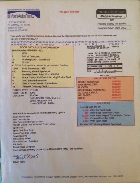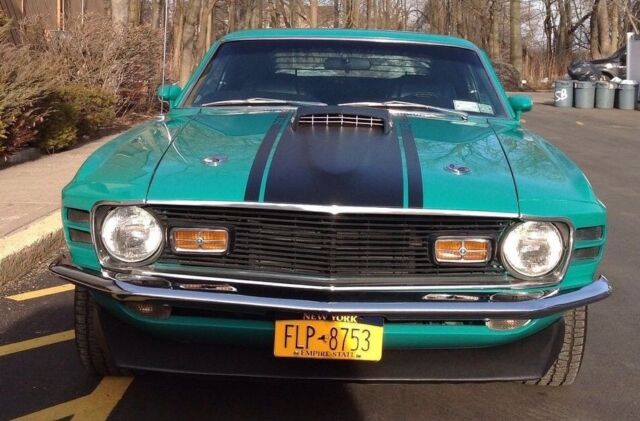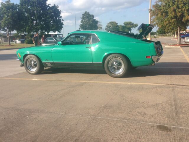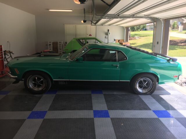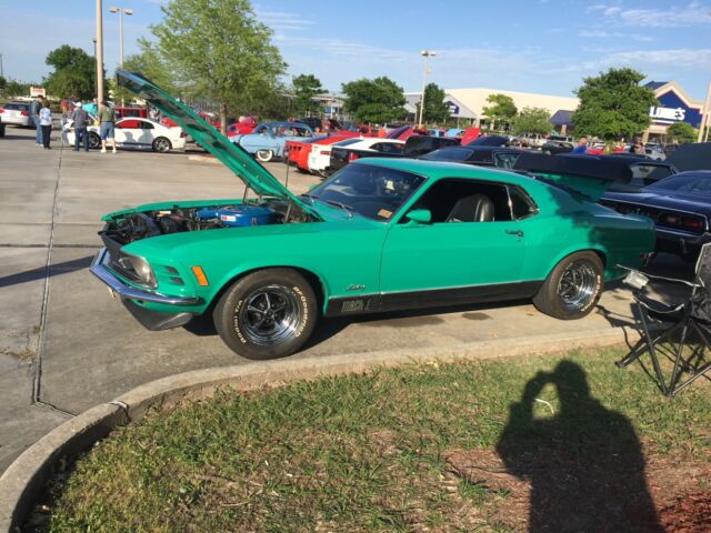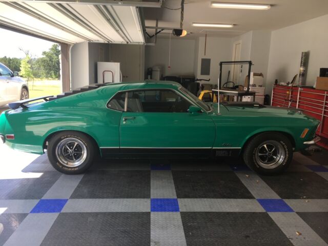 Beautifully restored 1970 Mach1 Mustang finished in itsoriginal and rare Grabber Green paint powered by its original numbers matchingM-code 11.0:1 compression 351 Cleveland engine and transmission. The car isrestored to near original from the paint and engine to its front chin spoiler,rear window louvers, fold down rear seat, tilt wheel, rear deck spoiler, AMradio and factory A/C with the Marti Report to prove it. This combination hasrare original numbers matching engine with the high compression version thatwas only available for 2 years.â¢Clean engine compartment â¢FMX transmission â¢Stockappearance under hood â¢4bbl Carburetor (dialed in) Easy Start! â¢No overheatingissues â¢9 rear end 3.25 rear ratio â¢Power steering â¢Power disc brakes â¢CorrectFord valve covers â¢Exterior paint is slick/nice â¢Original Interior very goodâ¢Factory gauges â¢Factory bucket seats â¢Factory center console ⢠OriginalRim-blow steering wheel needs resto â¢Original AM Radio ⢠Upgraded to MagnumWheels ⢠New BFG TA tires â¢New Battery â¢Dual exhaust system-sounds amazingâ¢Underneath is VERY clean/solid â¢Brake/fuel lines gone thru â¢Chrome/Glass/Trimnice â¢Weather-stripping nice â¢Suspension feels factory â¢Trunk is clean/w matâ¢Body lines and metal are nice â¢Door jams nice/crisp â¢Everythingfunctions/except HVAC inoperable â¢Runs/drives and stops excellentIn 1972 when I was 16, an older friend of mine was going offto college and sold me his Grabber Green 1970 Mustang Mach 1. It was an AC car with a 2V-351 and auto. At that point in my life that was the most stunningand desirable car that I could imagine buying. I was pinch me proud. My wife tobe and I dated in that car and had so many memories from places we went andthings we did. Life happens and I soldthe car back to the prior owner and lost track of it. Fast forward to 2009 and I had seen a similarcar on eBay and made the decision that I wanted to replace my old car. That car was not air conditioned and I had tohave it. After 5 years of looking forthe right car to replace the one of my youth, I found this one and purchased itin 2014.It had been rotisserie restored approximately 5 years beforeaccording to the prior seller. The carhas been garage kept since I owned it and has only been driven to local carshows or trailered to others. Since Mayof 2014, I have only driven it 555 miles.Many of you will understand the visceral excitement you getfrom getting behind the wheel of a vehicle that you loved so many years ago. The memories just keep flooding in. However, because it just sits in my garage, Ino longer enjoy it. It is, therefore,time to let someone else enjoy it.