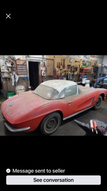@import url(https://fonts.googleapis.com/css?family=Roboto); About this vehicle This 1962 Chevrolet Corvette is an original. The owner has had it for 1 year. The vehicle needs work. Seller's Notes Selling as is where is no warrenties must be towed 1000 non refundable deposit at sale end balance in cash only I have clear title Vehicle Details Selling a solid 1962 corvette Very nice restorable car been in garage since 1985 has 62 -327 engine rebuilt and never started so i took engine apart to check it and it is all rebuilt 300 hp corvette motor but not original to this car Has correct 4 speed to car All parts from car are there bumper grill etc Chrome is driver quality needs polished interior is ok to use as is just needs cleaned and complete carpet needs replaced have original hubcaps has nice convertible top and original hardtop Pass side door is cracked due to ladder falling on it in garage Rest of body is very nice I think this is original paint but not sure Frame is nice some scaly rust but no hole anywhere All wiring is still in car I do believe you could put motor tranny back in car and drive it as is Exterior Interior Engine Download the eBay Motors app