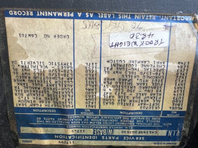 | Model: | C/K Pickup 1500 | Power Options: | Air Conditioning |