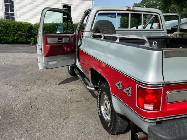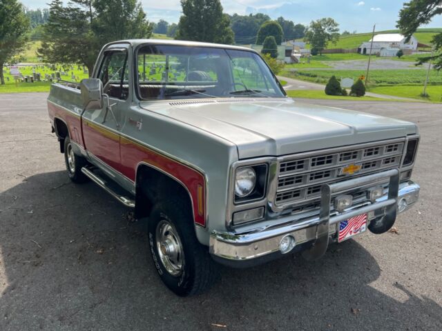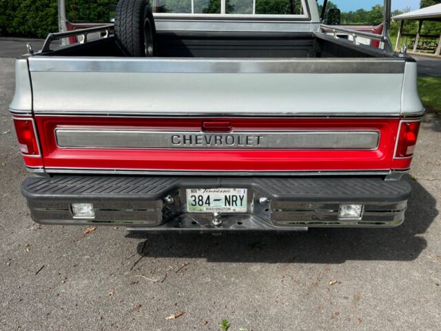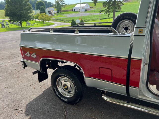 This 1979 Chevrolet K10 Cheyenneis a half-ton pickup that is finished in Mystic Silver & Red Special Two-Tone over red/silver upholstery, and it is powered by a 350ci V8 paired with a four-speed manual transmission and a dual-range transfer case. Additional equipment includes 15â³ steel wheels, manually-locking front hubs, dual fuel tanks, and a Delco AM/FM push-button radio. The truck was purchased in 1980 by my grandfather and was his daily driver. Subsequent work included a rebuild of the transmission, a new clutch, a rebuild of AC components, spark plugs, ignition wires, and an air filter. This has a clean TN title.The truck is finished in Mystic Silver with Red Accents and features a chrome grille, aftermarket front bumper, and side mirrors, as well as an aftermarket chrome rear bumper and receiver hitch with backup lights. The right-side rocker panel was replaced due to being sideswiped. The factory Cheyenne 15â³ steel wheels with polished trim rings are mounted to Geotrac Patagonia A/T tires. Manually-locking front hubs are fitted up front, and braking is handled by drums at all four corners.The cab features a red vinyl bench seat with a matching upper dash, door panels, and carpets. Appointments include hand-crank windows, lap belts, a heater, and a Delco AM/FM push-button radio. A dash-mounted switch controls the dual fuel tanks. Some interior pieces could be replaced.A two-spoke steering wheel frames a 100-mph speedometer and ancillary gauges. The five-digit odometer shows 54k miles. True mileage is 254k as the odometer has flipped twice.The 350ci V8 was factory rated at 175 horsepower and 275 lb-ft of torque when new. The engine runs strong but has 254k miles.Power is sent to all four wheels via a four-speed manual transmission and a dual-range transfer case. As noted in the appraisal, there is very little rust, and the undercarriage is very clean considering the age. Additional underside images can be viewed in the gallery.