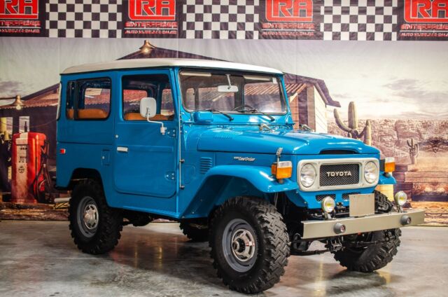LRA Auto Museum and Sales presents this 1980 Toyota FJ40 Land Cruiser that had been refurbished in Venezuela before it was imported to the US in 2019. Powered by a 4.2 Litre inline six, paired with a 4 speed manual transmission and a dual range transfer case.Additional features include fog lights, 15â³ steel wheels, an Old Man Emu steering stabilizer, manually locking front hubs, Vintage Air climate control, and rear jump seats. Service during current ownership is said to have consisted of reupholstering the seats in brown, installing a PerTronix ignition system, and replacing the carburetor, fuel tank, radiator, brake master cylinder, brake lines, and window regulators.Previously beige, the body of this FJ40 was removed during the refurbishment and refinished in turquoise with a white roof. The door seals, front indicators, and tail lights were also reportedly replaced at that time. Exterior details includeGray 15â³ steel wheels are mounted with LT235-15 Pirelli Campero tires, and a matching spare is mounted to a swing-out rear carrier. The truck is equipped with manually locking front hubs and an Old Man Emu steering stabilizer. Braking is provided by front discs and rear drums, and service during current ownership reportedly consisted of replacing the rear brake cylinders, brake lines and brake master cylinder. fog lights with yellow lenses, a folding windshield with hold-downs, and silver bumpers. The cabin features front bucket seats and inward-facing rear jump seats trimmed in brown upholstery along with matching door panel inserts and a black dash pad. Appointments include Vintage Air climate control, sun visors, and pop-out rear quarter windows. The three-spoke steering wheel frames a replacement 160-km/h speedometer as well as gauges for oil pressure, coolant temperature, amperage, and fuel level. The five-digit odometer shows 162 kilometersThis Toyota Land Cruiser is brand new and in mint condition and wont last long. Give us a call today at 2157813790 or email us at sales@lrasales.com