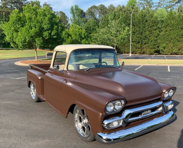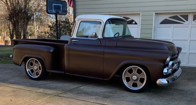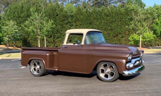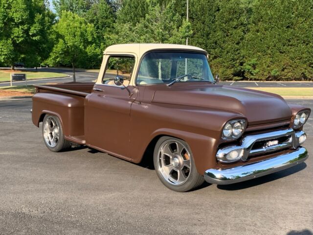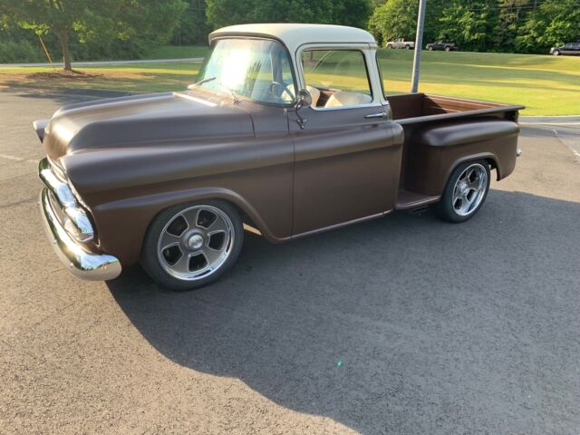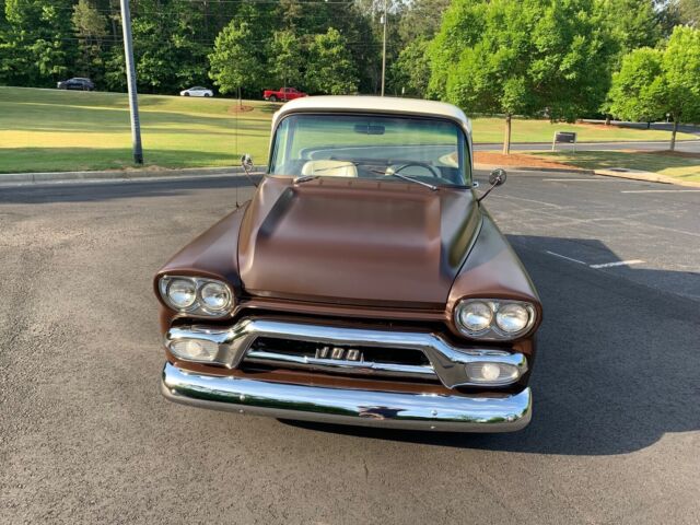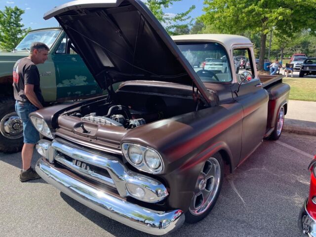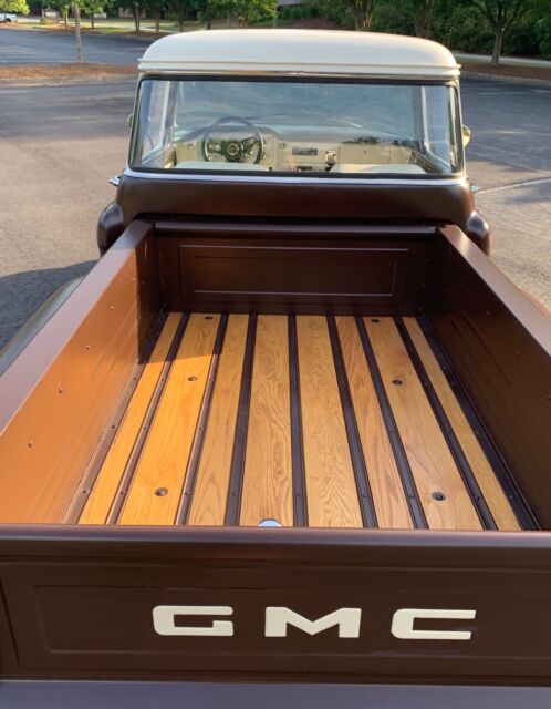 @import url(https://fonts.googleapis.com/css?family=Roboto); About this vehicle This 1959 GMC 100 is a restomod with updates to the exterior, interior and drivetrain. The owner has had it for 1 year. The vehicle runs great and is mainly used for car shows. Seller's Notes Ga title in hand, no liens, 1 set of keys & door popper Vehicle Details 1959 GMC 100 (Apache) Big back window, Frame off restomod, no rust. Detailed & painted frame, 4 wheel disk brakes, mustang 2 sub frame, 1995 fuel injected 350 w/ 700r4 (overdrive), power steering, stainless headers, posi rear, heat & a/c (a/c needs tune up), custom gauges, vent window delete w/ power windows, door poppers & manual handles, Satin Brown & cream paint job, nice red oak bed wood, fresh show chrome front end & bumpers, lowered suspension, US Mags 20x9.5 285/40zr20, 20x8 245/45zr20, Newly covered leather power seats, Custom console w/ B&M shifter, painless wiring, New Bluetooth Retro Radio & speakers, Recent tune up with New Fuel filters, New Spark plugs, New Spark plug wires, New distributor, New Air cleaner, etc. Full frame off build with nothing untouched. Truck was built 5 years ago & has been continually modified/upgraded since completed. This is a very solid nice driving truck not a trailer queen so there is a little minor wear & tear. Needs new brake light switch due to lights bleed when truck is off sometimes & a/c serviced to be optimal (I believe just a evac & recharge will maintain cooler air) Clean Conditional Georgia Title, only trades will be 50âs cars or 50âs-70âs trucks with $20k+ cash my way. Vehicle will not be released until all funds have been clear for 72 business hours. Exterior Interior Engine Download the eBay Motors app