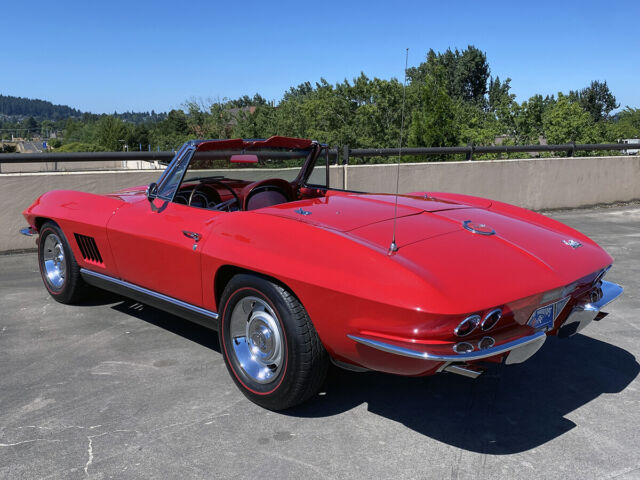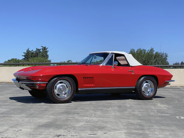 1967 Corvette Convertible Rare automatic car with air conditioning. Outstanding restoration and highly detailed throughout. Features include: · Fully rebuilt 327-300 HP engine · Upgraded turbo 350 automatic · 3.08 ratio positraction rearend · Newer 4-wheel disc brakes · Upgraded vintage air · Heavy duty cooling system · Power steering · Rebuilt instruments · AM-FM stereo system · Simulated wood wheel · Newer red vinyl interior · New white convertible top · New weather strips and seals · Outstanding chrome, glass and trim · 15â rally wheels with redline radials · Beautiful body with excellent fit · Show quality âRally Redâ exterior finish Serious buyers may contact Mark Young for additional details at (503) 880-1777. More photos available at www.nwhouseofhardtops.com. About Us . . . Northwest House of Hardtops indoor showroom and facility is located in Portland, Oregon just 10 minutes from the Portland International Airport. Since 1981 we have delivered hundreds of the finest investment cars to individuals and collectors all over the United States, Canada and abroad. For over 40 years we have restored concourse, award-winning Corvettes, muscle cars and classics to correct factory specifications (or better). Our team of restoration and detailing experts are truly second to none, including our elite painter (awarded #1 Refinisher for Chevrolet in 1989 and #1 A.S.E. Refinisher in the Nation in 2001). We strive for perfection and customer satisfaction in every vehicle and it shows. Terms and Conditions . . . Vehicle is for sale locally and Seller may end listing at any time. If you are the winning bidder a $2,000.00 deposit will be required within 48 hours after auction ends, with the remaining balance due 5 days thereafter. NO EXCEPTIONS unless prior arrangements have been made with the seller. This is a âUsed Vehicleâ and therefore will be sold âAS-ISâ. Inspections are welcome PRIOR to the auction ending. Buyer is responsible for vehicle pickup or shipping. My company works with several qualified transporters and we will be happy to help with those arrangements. If you have any questions, please call Mark Young at (503) 880-1777 or email mark@nwhouseofhardtops.com.