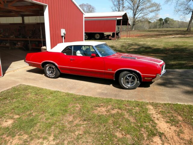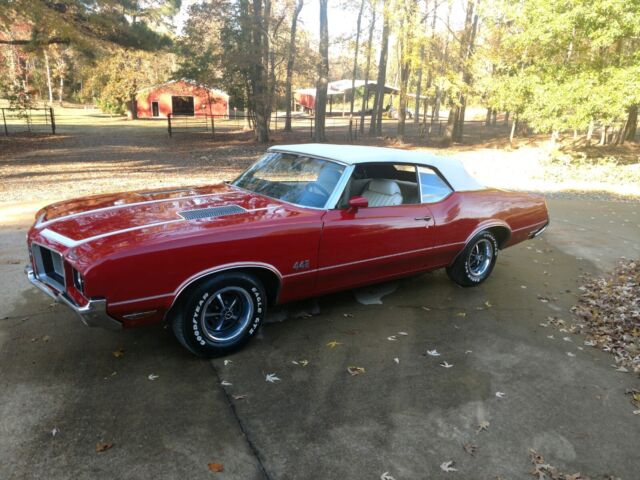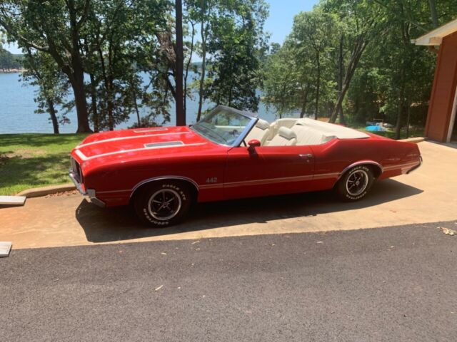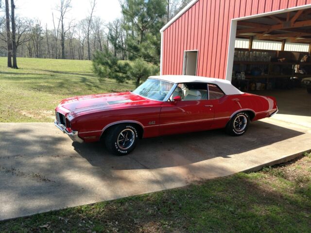 This 1972 Olds Cutlas 442 Convertible was sold new at Lloyd Ketcham Oldsmobile in Independence MO. in May 1972 I am the second registered owner and have owned several years, The 442 has almost all original paint and for fifty years old is in good condition. The car has its ORIGINAL BORN with 455 drivetrain including carb.(PICTURES INCLUDED) I did a complete tune up serviced the ICE COLD ac The car runs and drives well. I have the original top boot, original shocks and the original 1972 Packard wires and the original spare tire in the trunk.I have been told this is probably one of around 100 455 442 convertibles made? All the original factory marking are still in place and even the factory seat belt buzzer worksOPTIONS:W29 442 Appearance and handling PackageU 455 4 Barrel EngineAO2 Tinted Glass (All windows)C60 Air ConditionD35 Sport MirrorsG80 3:42 PositractionL75 Rocket Engine includes front power disc brakes dual exhaustM40 TH 400 TransN33 Tilt columnN34 Sport Steering WheelN47 Power SteeringN66 Super Stock WheelsPK5 Wide Oval TitesU21 Rocket Rally Pack Gages tick tock tachW26 Consolewith Hurst Dual Gate Shifter Y60 Convenieence Light PackageY72 Heavy Duty Cooling PackageDocumentation:2 Broadcast SheetsProtecto CardWarranty Information CardSelling InvoiceWaranty BookEngine Break In CardOriginal 1972 Registration DocumentsTitle CopiesMy name is Bill 936 336-0765 Please NO EMAILS Text or call Thank You