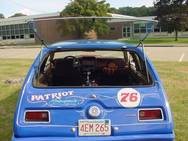 WHAT WE HAVE HERE IS A CUSTOM 1976 AMC GREMLIN, THIS CAR WAS BUILT RIGHT, I BELIEVE IT WAS OR USE TO BE A DRAG CAR BUT NOT 100% SURE, THIS CAR IS FAST AND LOUD IF YOUR LOOKING FOR ATTENTION AND WANT SOMETHING THAT NO ONE ELSE HAS, THEN THIS IS THE CAR FOR YOU, THE CAR IT'S SELF HAS 84,000 MILES BUT NOT THE DRIVE TRAIN, THE MOTOR IS AN LS3 BACKED BY A 700 R 4 SPEED AUTOMATIC TRANNY WITH 8.8 FORD POSI TRACK 3.73 TO 1 RATIO, IT HAS POWER DISC BRAKES UP FRONT AND DRUM IN THE REAR, POWER STEERING AS WELL, ALL DASH GAUGES HAVE BEEN UP GRATED AND BLUE TOOTH RADIO AS WELL, THE CAR RUNS AT A 190 TO 200 TEMP ALL DAY LONG, IT HAS ELECTRIC FANS TO HELP COOL THE CAR DOWN, IN OVER ALL OF PAINT ON THE CAR AS YOU CAN SEE IT IS VERY DIFFERENT FOR SURE, NOT PERFECT PAINT BUT SHOWS NICE AND GRABS ATTENTION, INTERIOR IS IN OVER ALL PRETTY GOOD CONDITION AS WELL, ALSO THIS WAS A FORMER FLORIDA CAR SO THE UNDERCARRIAGE IS RUST FREE, AS FOR THE DUEL EXHAUST SHE IS RUNNING VERY SMALL CHERRY BOMB EXHAUST, HENCE WHY SHE CAN BE LOUD ONCE YOU STEP ON IT, OR SHE CAN BE QUIET IF NORMAL DRIVING, ( HARD TO DRIVE NORMAL WHEN YOU HAVE POWER AT THE PEDAL ) LOL NOT MUCH MORE TO SAY OTHER THAN THIS CAR BRINGS ON ATTENTION AND LOOKS AND POWER, IF THIS IS NOT YOUR STYLE THEN THIS CAR IS TO MUCH FOR YOU, THE PRICE IS RIGHT AND WELL BELOW ALL OTHER GREMLINS FOR SALE OUT THERE, IT IS WORTH THE MONEY ALL DAY LONG, HAPPY BIDDING AND ANY QUESTIONS AT ALL PLEASE FEEL FREE TO REPLY HERE OR TEXT ME AT 508-631-5879....THANK YOUPAUL