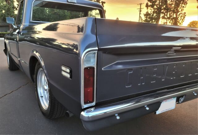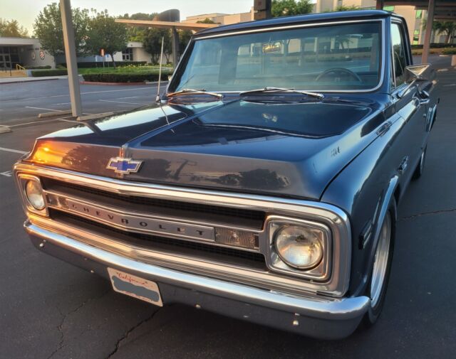 LOW RESERVE! FACTORY SHORT BED FLEETSIDE C-10 PICKUPGreat opportunity to get a high demand pickup at a great price. This is a true Factory short bed pickup. Vehicle is a true head turner with many compliments. Starts up and runs smooth and powerful. Strong motor, vehicle has had many upgrades and replacements performed. Upgrades including:Serviced 454 big block Motor (not the factory motor)Fresh, Rebuilt carburetorNew air cleanerNewer Front disc brakes and rear drum brakesStrong Turbo 400 automatic transmission has been recently servicedNew ignitionNewer Grant Steering wheelNewer power steering pumpHas a remanufactured power steering box and newer hosesNew HEI distributorNew spark plug wiresNew alternatorNewer master cylinder and boosterCleaned fuel tankNewer control armsNew CPP lowering springs and shocksBrand new 255/55/18 tiresNew American Racing 18-inch Aluminum wheelsAll new headlights, blinkers, brake lights, running lights work, wiring was replaced where neededNew marker lights including lensesBody and Trim components:Newly upholstered 2-tone seatNewer carpetNew visorsNew mirrors rear and sidesNew dash padNew bluetooth radio works goodNew a/c vents (not connected)New door sealsNew window seals including quarter window rubber sealsNew door handles and window cranksNew antennaNew interior and exterior dome lightsNew chrome interiorNew metal bed floor, tailgate, and bed front with with new bed hardware and bed coatingFrame cleaned and repaintedVehicle has been painted previously in recent past in what appears to be a sonic blue 2-stage color. See link for more pictures and video of vehicle:https://app.photobucket.com/u/bpai777/a/3e93b958-ffe6-4eee-afe5-a4a8481cf8f8Clean title in my name with current registration. No scams, flakes or dreamers. Non-paying bidders will be reported to ebay. $500 non-refundable deposit through ebay. Encourage pre-purchase inspections. NO post-purchase inspections. Vehicle sold AS-IS. Can and will assist with transportation.