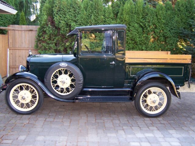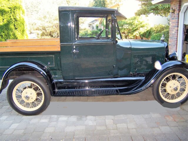 I HAVE OWNED THIS TRUCK SINCE JUNE 2008, WHEN I'M NOT DRIVING IT, IT IS GARAGED AND KEPT UP WITH IN EVERY DETAIL. THE COLORING EXTERIOR IS A DEEP GREEN BODY WITH BLACK FENDERS AND RADIATOR COWL. IT IS AN EARLIER RESTORATION, BEFORE I BOUGHT IT; OVERALL THE PAINT IS IN GREAT CONDITION; SEE PIX AND JUDGE FOR YOURSELF. DRIVE TRAIN IS IS VERY GOOD CONDITION, NO ISSUES. I HAVE REPLACED STARTER MOTOR AND BENDIX WITH NEW, I REPLACED PLUGS, POINTS, CONDENSOR AND DISTRIBUTORCAM WITH NEW, CHANGED OUT CARB. (TILLISON) WITH AENITH, MUCH BETTER! BTW, NO BRAKE ISSUES-ALL GOOD. OTHER WORK ON ENGINE: REMOVED HEAD AND HAD IT PROFESSIONALLY MILLED/RESURFACED TRUE FLAT/STRAIGHT. REPLACED HEAD GASKET WITH NEW STYLE THAT STANDS UP TO THE FUELS OF TODAY AND BETTER COMPRESSION. REPLACED PISTON RINGS WITH NEW (0.125 OVER), HONED OUT ALL CYLINDERS TO NEAR NEW WALL CONDITION. REPLACED WATER PUMP PROPELLER SHAFT WITH SS (NEW) AND SEALS AND BUSHING. EXTERIOR: NEW SS FRONT BUMPER. NOTICE PIX; REAR OLD BUMPERS GOES WITH THE DEAL. REPLACED FRONT SHOCKS WITH NEW STYLE, NEVER GOT AROUND TO INSTALLING THE REAR WITH SHOCKS AND GRACKETS, SEE PIX. THE HEADLIGHT BAR IS A DROP DOWN BAR, I WILL LOCATE THE OLD ONE AND INCLUDE IT. ISSUES: THIS MODEL A STARTS REALLY EASY! IT GES UP AND GOES, NO PROBLEMS! IT WILL TAKE YOU ANYWHERE YOU WANT TO GO, AS LONG AS YOU HAVE GAS-LIKE ALWAYS WITH MODEL A'S, CHECK COOLANT LEVEL BEFORE LEAVING FOR THE DAY. THIS TRUCK RUNS GREAT AND NEVER OVER HEATS. AS FAR AS ANY LEAKS, IT MAY LOSE UP TO A TABLESPOON OF OIL OVER A YEAR'S TIME. THE SPEEDOMETER WILL WORK JUST NOT RIGHT NOW DUE TO A WORN OUT KEEPER RING THAT KEEPS THE GEAR IN PLACE AND TURNS THE SPEEDO CABLE-