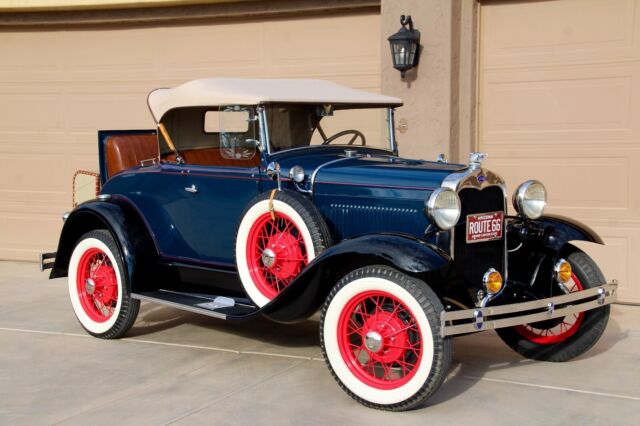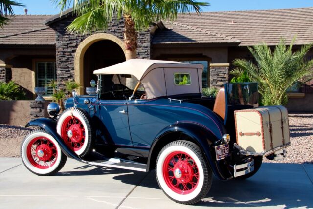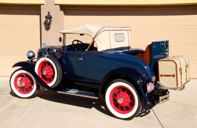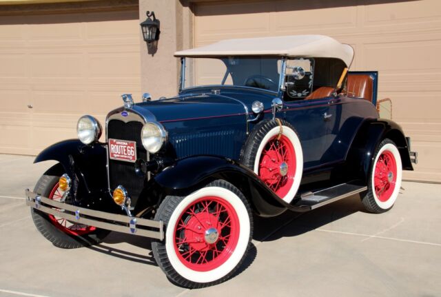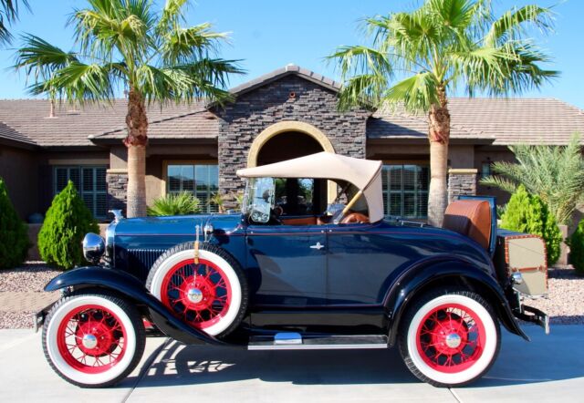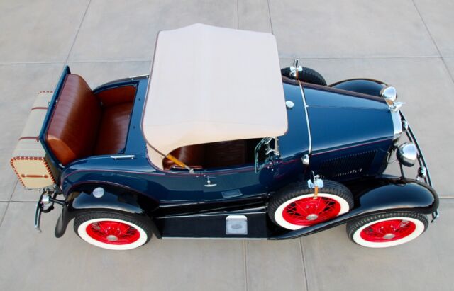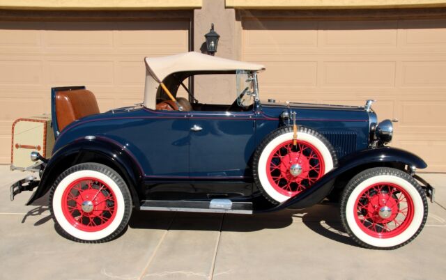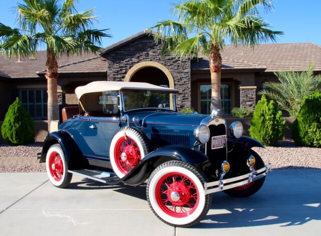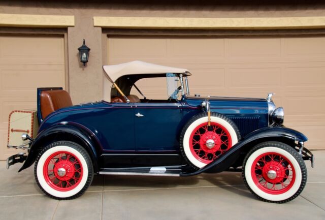 Classic Car Overview1931 Ford Model A Deluxe - Dual Spare Convertible Roadster, all steel Henry Ford in Excellent Condition, beautiful Washington Blue and black fenders, red pin stripes matching the nice red original spoke wheels, like new Firestone white wall tires, 6 pieces including the 2 spares, period correct restoration completed just a few years ago, car is in nearly new condition, everything has been restored including engine and transmission, Runs and drives excellent, all stock, still a 6 Volt, the only modification was to add juice brakes and this is a fantastic and expensive upgrade, car stops better with less effort ! Like new LeBaron Bonney interior, like new rumble seat compartment, Tan new leather chest trunk matching the immaculate Tan convertible top.... car is show ready !!! Flying Quail radiator ornament, double bumpers, Prewar style headlights, amber fog lights and cowl lamps, Oo-ga Horn, running board step plates with Ford logo on both sides, Chrome framed windshield that moves forward for air flow - the Air Conditioning back in the day, antique style wind deflectors - embossed glass flowers..... and a lot more to be mentioned here.....Super clean interior, Super clean engine compartment, Super clean chassis and like new underneath ! Car is located in Arizona, clean 1931 Title in hand, ready for Sunny weekends - 100% show winner !!!Terms of Sale : Vehicle is located in Phoenix - Arizona, Seller has the right to end up the listing at any time because the car is also listed for sale locally, inspections are welcomed before the auction ends, Vehicle would be sold on As is Where is Basis, Shipping of the car is buyer responsibility, however, we can help with the shipping of the car if needed. A $ 500 NON REFUNDABLE Deposit should be paid at the end of the auction, if you click on the buy it now button or you're the winner of this auction please be serious and let's not waste our time, car will be re-listed if a deposit will not be received within 24 hours. Remaining balance to be paid within 5 business days. I'm a small classic car dealer, I have to collect taxes from Arizona buyers, international or out of state buyers will NOT pay taxes. If you have additional questions please ask by sending an eBay message, I will try to respond asap. Please NO trades at this time ! If you want to finance this vehicle please contact J.J. BEST BANC CO. (800 872 1965) very fast loan approvals, especially for classic cars, Thanks and good luck !