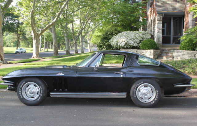 Up for auction at low reserve is our classic 1965 C2 Corvette Coupe. Finished in rare raven black paint with camel interior, it's a crowd pleaser and gets thumbs up everywhere it goes. NOM 350CI motor with 4V carb. Believed to originally be a 396BB car. Pulls strong thru all 4 gears. Sounds great ...